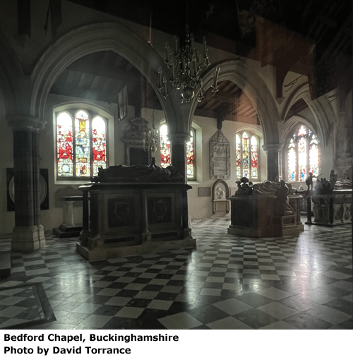 Earl Russell died in 1878, at which point he joined other members of the Russell family, the Dukes of Bedford, at the impressive Bedford Chapel in Buckinghamshire. This, as I’ve previously written, is only accessible upon a generous donation to a charity of the present Duke’s choice, but what I hadn’t realised (until informed by a church-visiting friend) was that it’s visible through a glazed screen in the adjoining St Michael’s Church at Chenies.